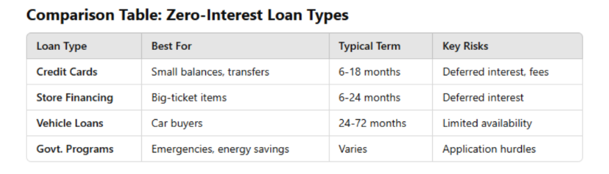 Comparison Table: Zero-Interest Loan Types